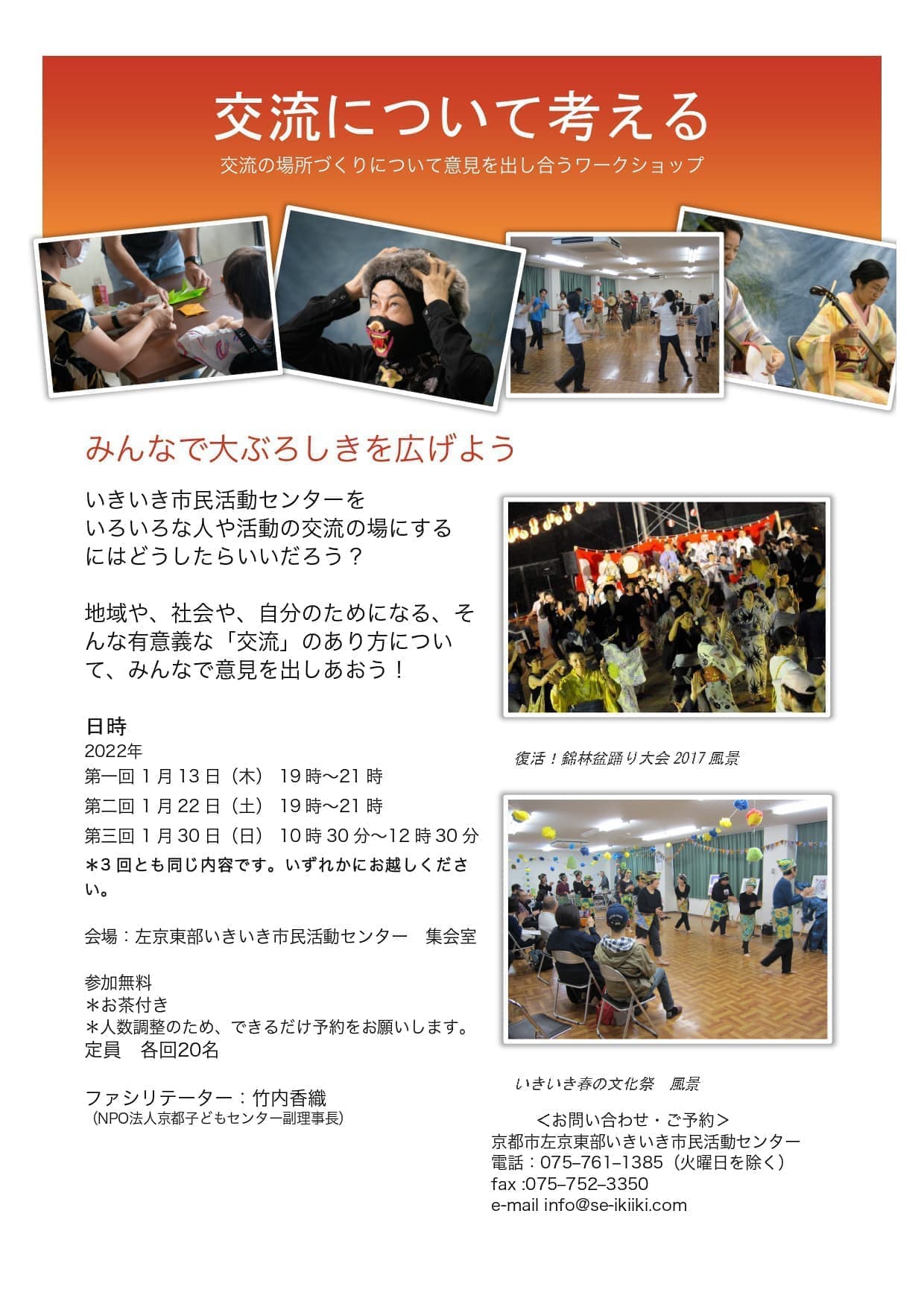 電話:075-761-1385(左京東部いきいき市民活動センター)